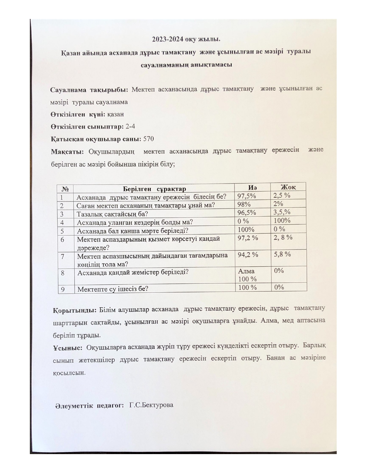 «Дұрыс тамақтану» сауалнама » СШ №46