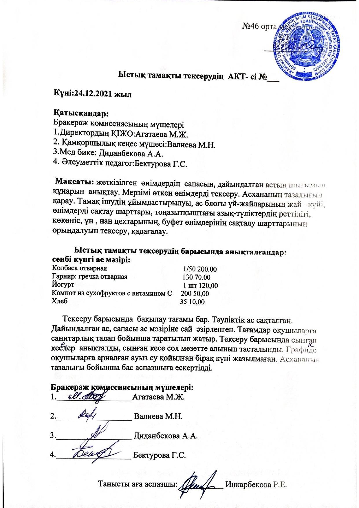 03 желтоқсан 2021 Ыстық тамақ АКТ-і