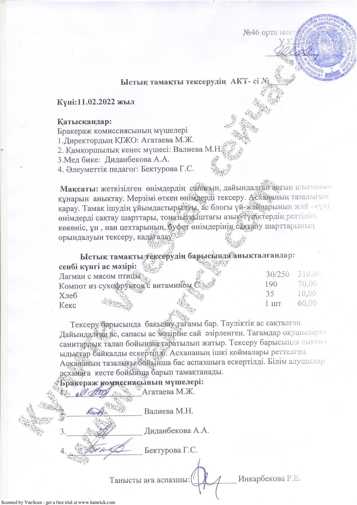 28 қаңтар 2022 Ыстық тамақ АКТ-і