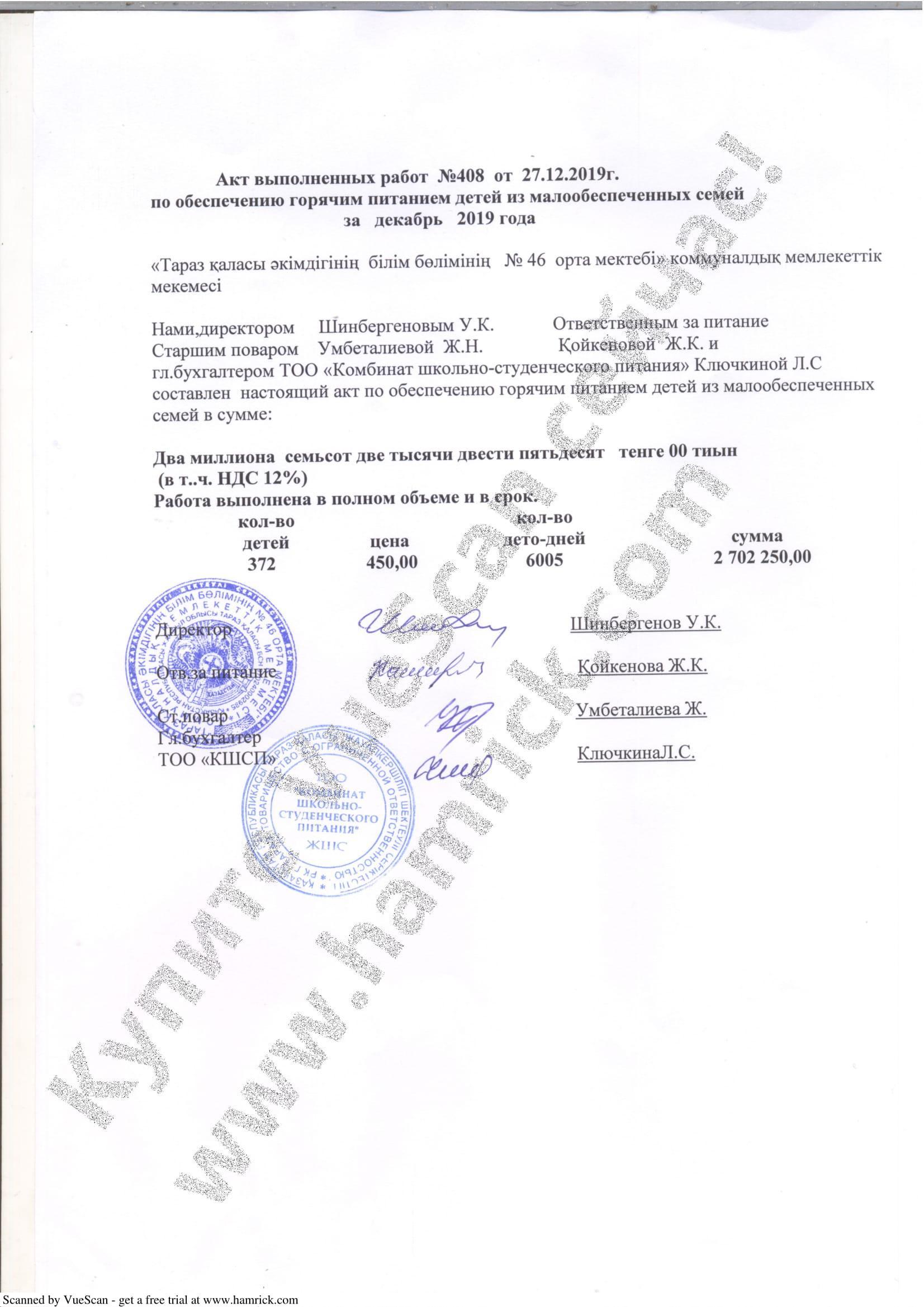 Қызмет көрсетілудің актісі » СШ №46