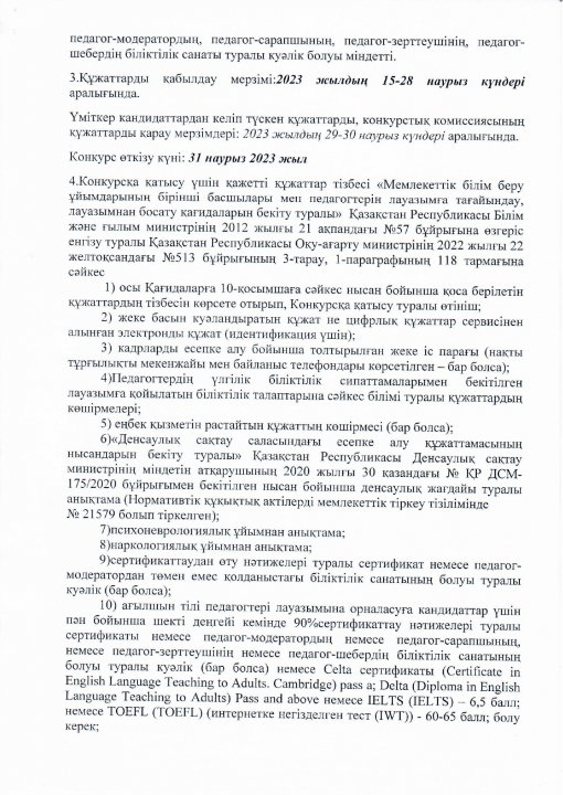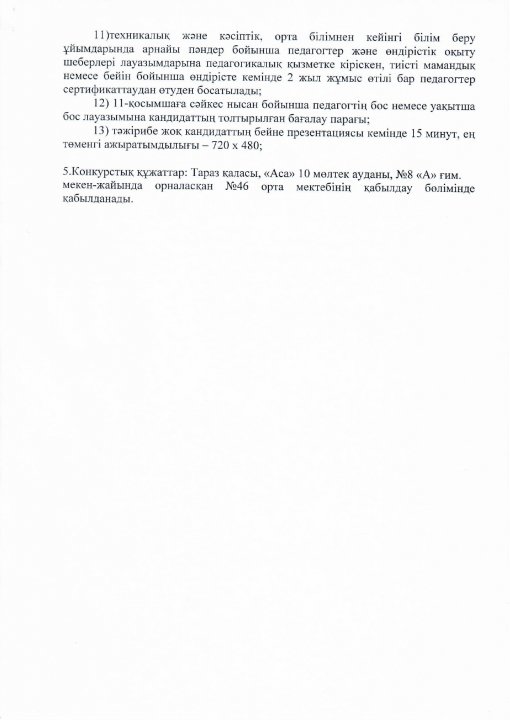 Уақытша бос орынға конкурс жариялайды » СШ №46