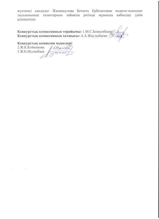 24 қараша 2023 0 1 2 3 4 5 ХАТТАМАСЫ "Жамбыл облысы әкімдігінің білм басқармасы Тараз қаласының білім бөлімінің №46 орта мектебі" КММ-нің конкурстық комиссия отырысының 24.11.2023 жылғы &12 хаттамасының шешімі.