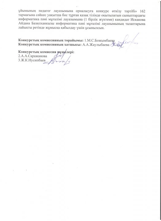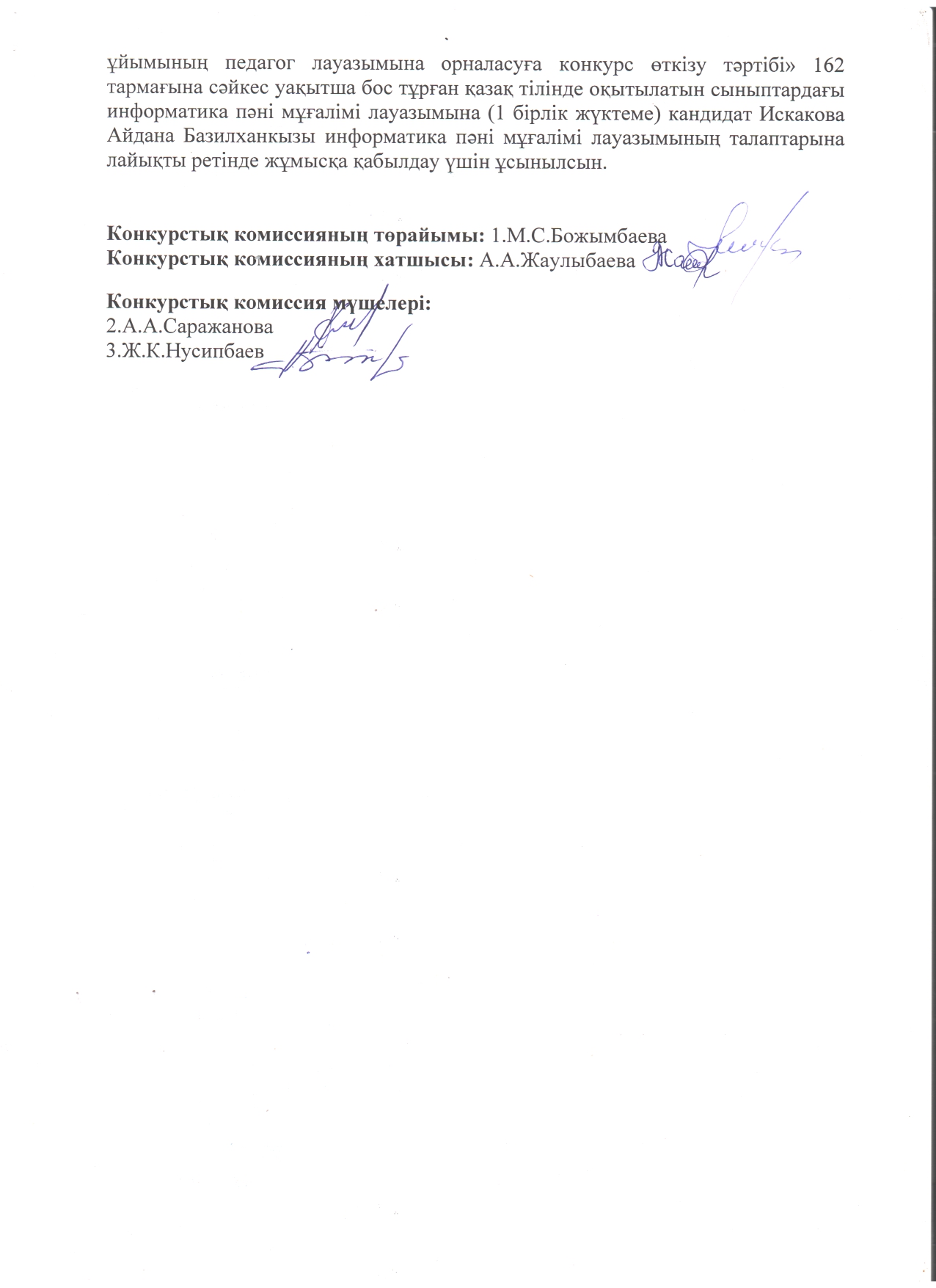 19 наурыз 2024 0 1 2 3 4 5 19.03.2024 жылғы хаттамасы "Жамбыл облысы әкімдігінің білім басқармасы Тараз қаласының білім бөлімінің 46 орта мектебі" КММ-нің конкурстық комиссия отырысы ның 19.03.2024 жылғы 19 хаттамасы
