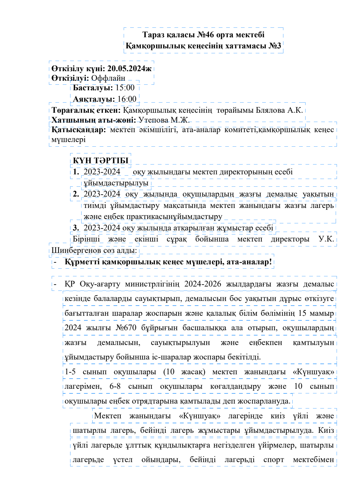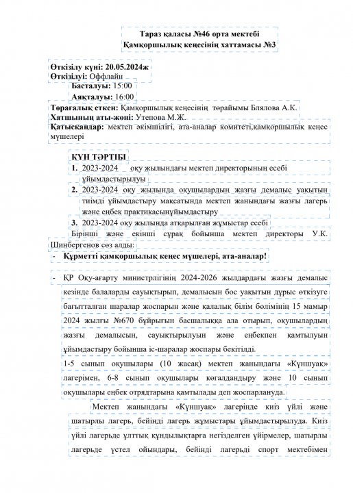 МЕКТЕП ДИРЕКТОРЫНЫҢ ЕСЕБІ » СШ №46