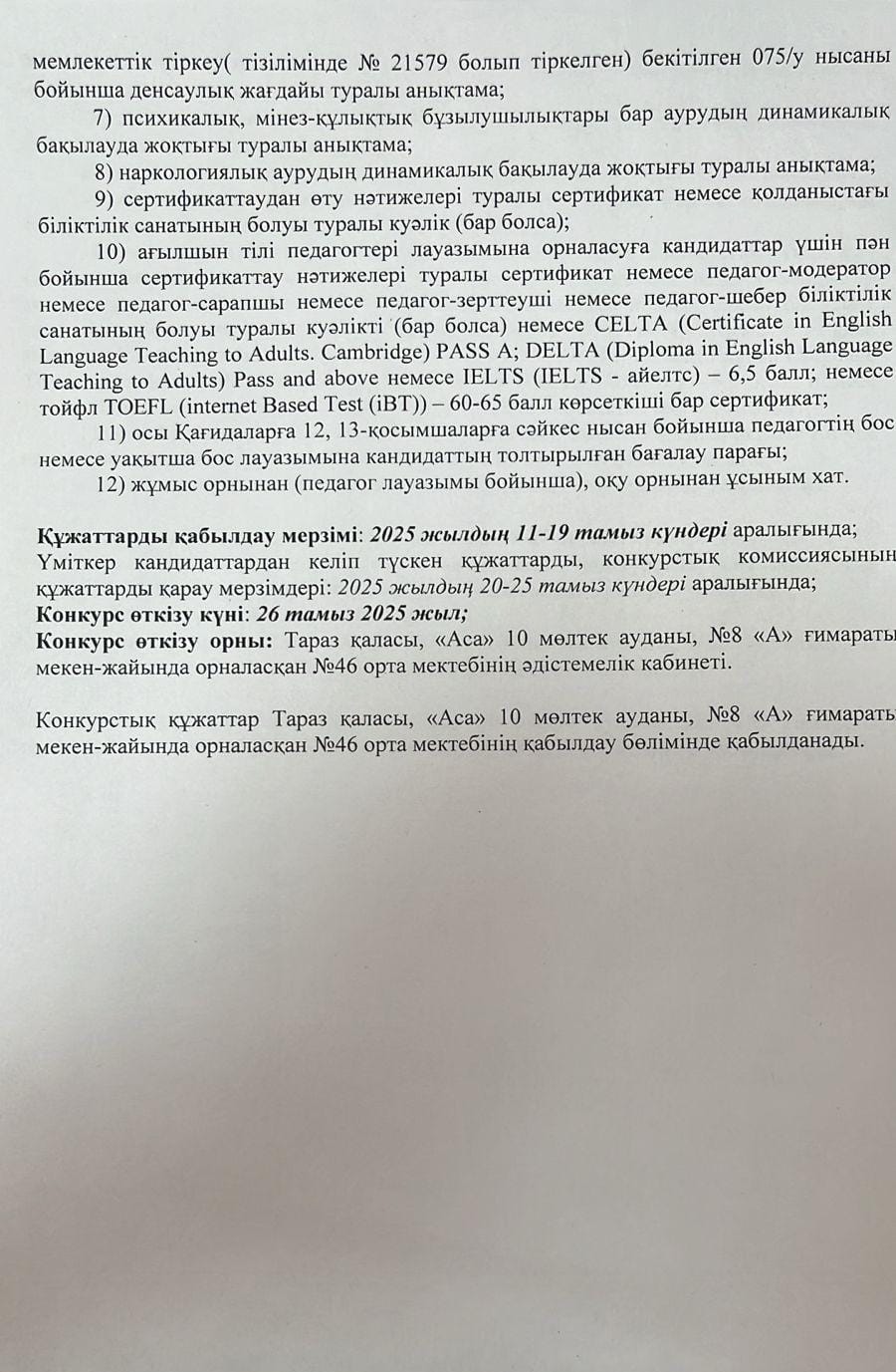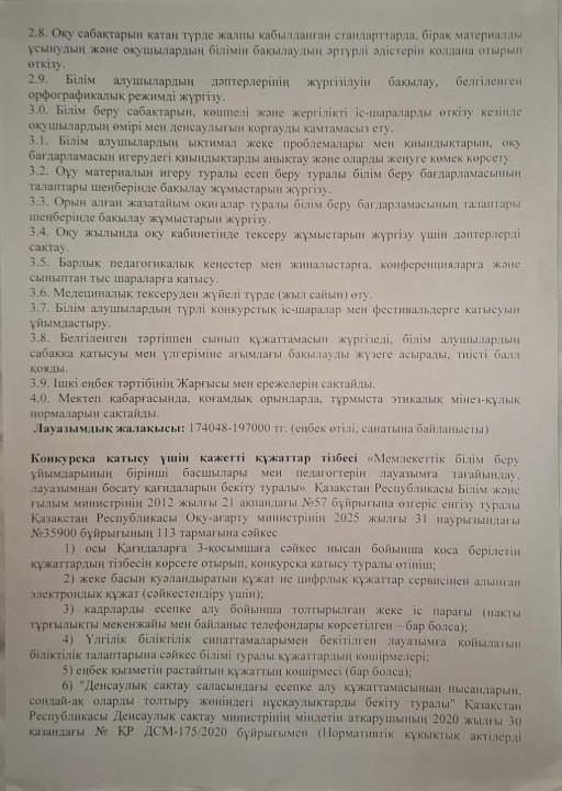 ТҰРАҚТЫ БОС ОРЫНҒА КОНКУРС ЖАРИЯЛАЙДЫ