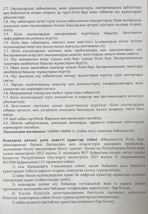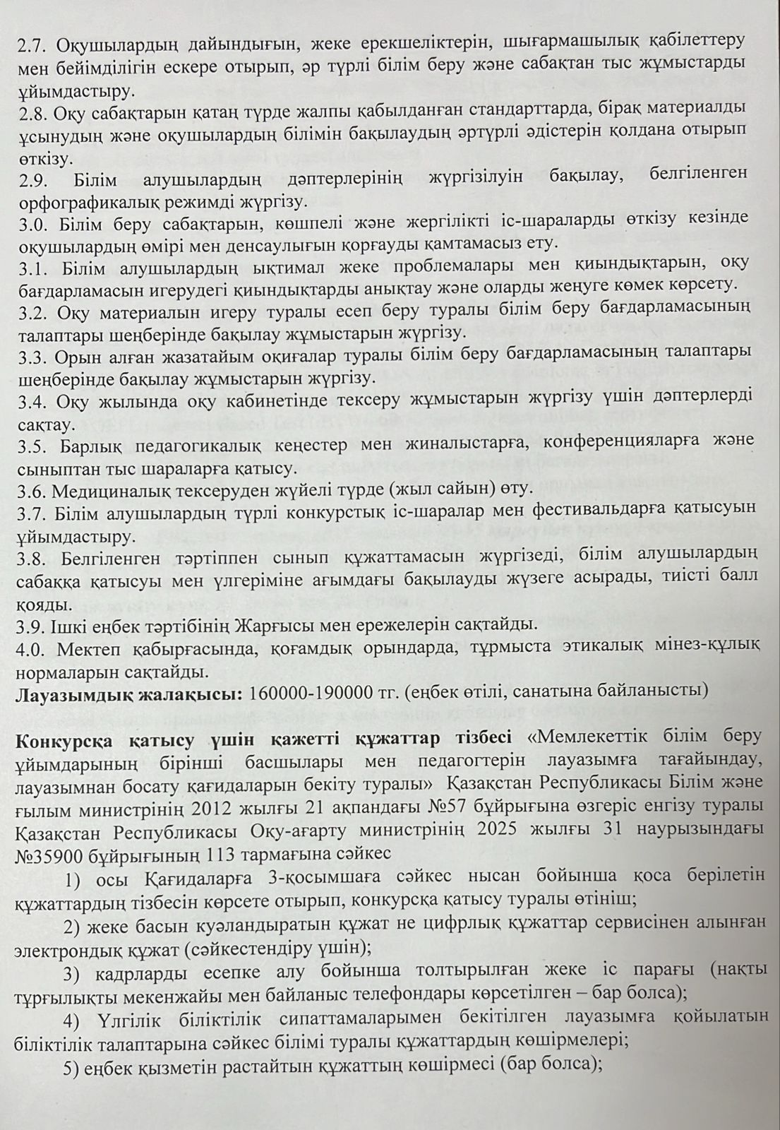 Уақытша және қосалқы қызмет бос орынға конкурс жариялайды