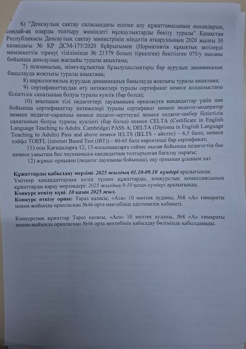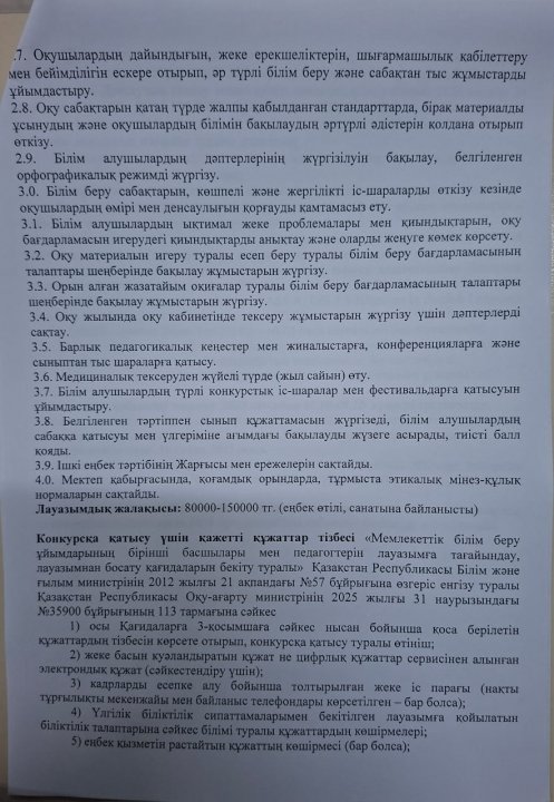 Уақытша және қосалқы қызмет бос орынға конкурс жариялайды