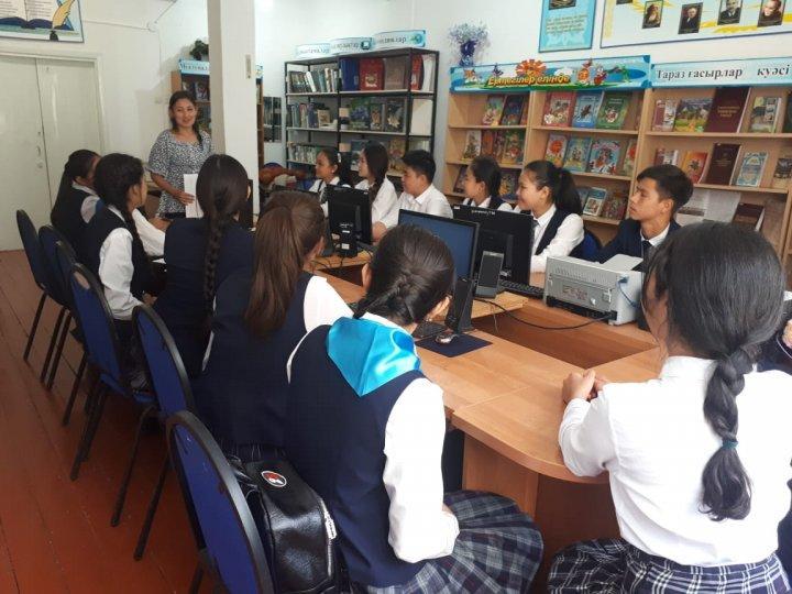 09.09.19 Қазақстан Республикасы халықтарының тілдер күні мерекесіне орай, №46 орта мектебінде "Тіл тәуелсіздігі - Ел тәуелсіздігі" атты 8-сыныптар арасында дөңгелек үстел жүргізілді. Оқушылар тіл тәуелсіздігіне байланысты баяндама дайындап талқылап өтті.