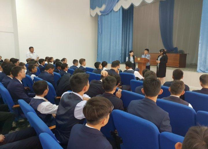 2019 жылдың 6 қыркүйегінде мәжіліс залында 5-11 сынып оқушыларына директордың тәрбие ісі жөніндегі орынбасарлары Ахметова Г.М. ,Утепова М.Ж. , «Азамат» ұлдар клубының жетекшісі Нүсіпбаев Ж.Қ., мектеп инспекторы Әбенов Б.М. жиналыс жасап, мектептің ішкі тәртіп ережесімен таныстырды. Оқушылардың әлеуметтік теңсіздікті тудыратын смартфонды сабаққа әкелуіне, міндетті мектеп формасын сақтамайтын, атрибутикалық киім және оқушыға жат шаш үлгісінде келуіне тыйым салынатындығы ескертілді.