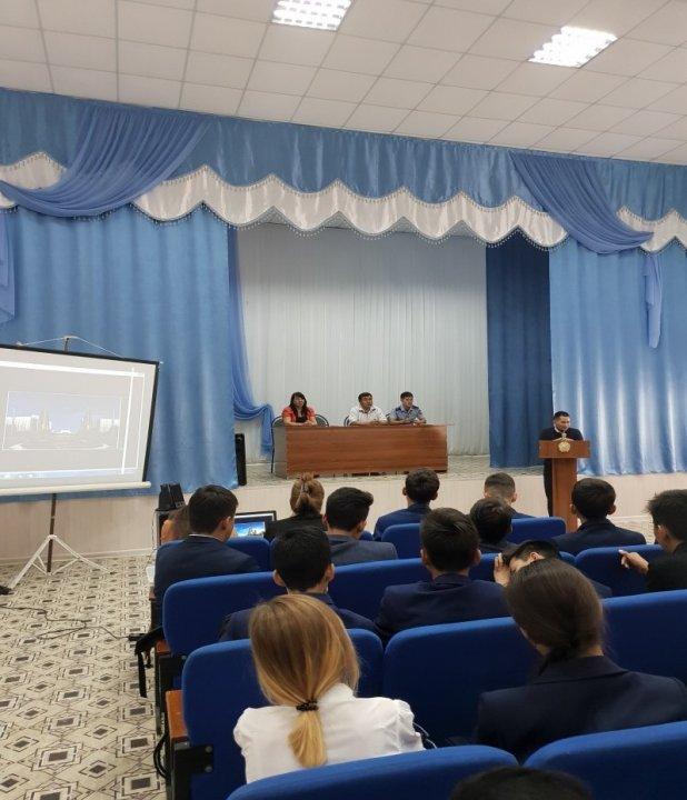 2019 жылдың 20 қыркүйегінде №46 орта мектебінде Тараз қалалық әкімдігі ішкі саясат бөлімі Дін проблемаларын талдау секторының меңгерушісі Зүнінқожа Зұлхарнайн Бұрханұлы «Дін және зайырлы қоғам» тақырыбында 9 сынып жетекшілері мен оқушыларына жиналыс жасап, әңгіме жүргізіп, кеңес берді. Бүгінгі таңда еліміздің діни ахуалына талдау жасау барысында халқымыздың 80 % -ға жуығы ислам дінін ұстанып, рухани құндылыққа бет бұрып жатқандығы және олардың басым бөлігін жастар құрайтындығы жайлы айтты. Радикалды ағым идеологтары дінді, діни шешендіктің ерекше әдістерін қолдана отырып, жастарға теріс ықпалын тигізіп жатқандығын фактілерді алға тарта отырып мағлұмат берді. Тақырыпқа сәйкес бейнероликтер көрсетіп , түсіндірме жұмыстарын жүргізді. Директордың тәрбие ісі жөніндегі орынбасары Ахметова Г.М. және «Азамат» ұлдар клубының жетекшісі, «Зайырлылық және дінтану негіздері» курсының мұғалімі Нүсіпбаев Ж.Қ. берілген ақпараттарды назарға алып,талаптарды орындап, алынған мәліметтерден қорытынды шығарып, адам санасын улайтын жат ақпараттардан бойын аулақ салуды ескертті.