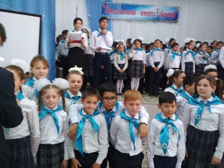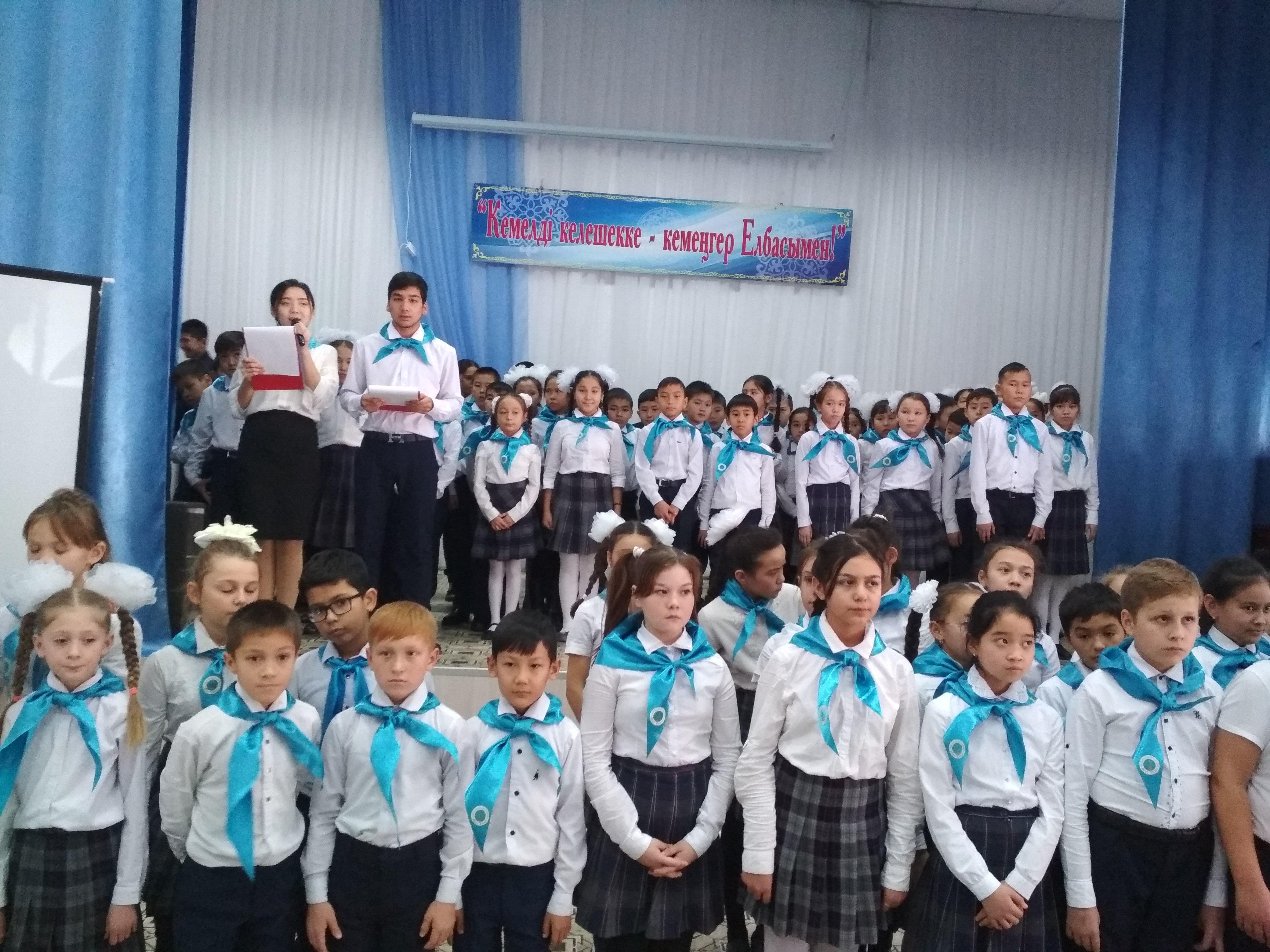 №46 орта мектебінде 2019 жылдың 26 қараша атты салтанатты жиын өткізілді. Жиынның ашылуы Қазақстан Республикасының туы енгізілуімен және әнұранның шырқалуымен басталды. Қазақтың халық әні «Еркемай» әнімен ашылды және қазақтың халық күйі «Кеңес» тартылды. «Жас Ұлан» ұйымының қатарына оқушылар қабылданды. 5 сынып оқушылары арасында жалпы «Жас Ұлан» қатарына 116 оқушы кірді. «Жас Ұлан» ұйымында Ант айту салтанаты 5 «В» сынып оқушысы Тілеміс Ислам айтып шықты. Атаулы мерекемен құттықтау үшін мектеп директоры Шынбергенов Оңталап Қыпшақұлы сөз сөйледі. Жас ұлан ұйымына қабылданған 5 сынып оқушылары өз өнерлерін көрсетіп өлең оқып, «Жаса, Қазақстан» флешмоб биледі. Салтанатты жиынның соңында Хор «Атамекен» әнімен аяқтады.