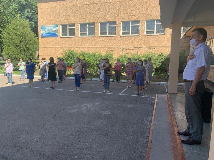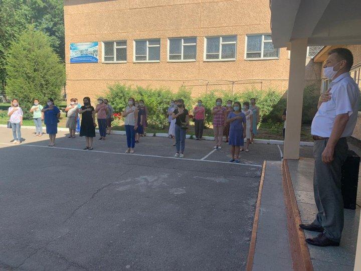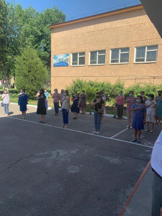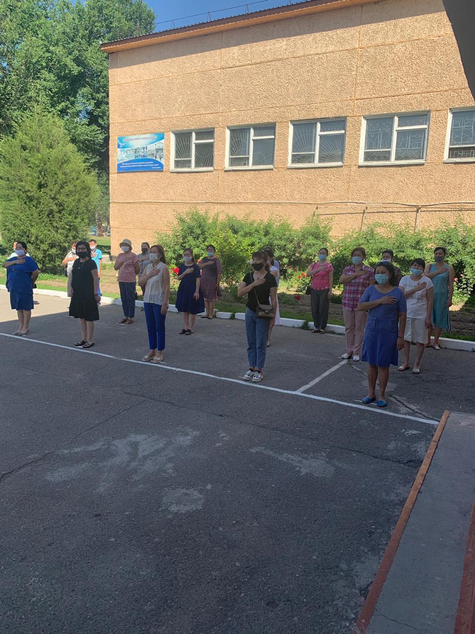 Мектеп әкімшілігі және мектептегі ұстаздарымыз сағат 10.00 – де мектеп алаңында мемлекетіміздің басты нышаны болып табылатын Мемлекеттік Гимнді орындады.