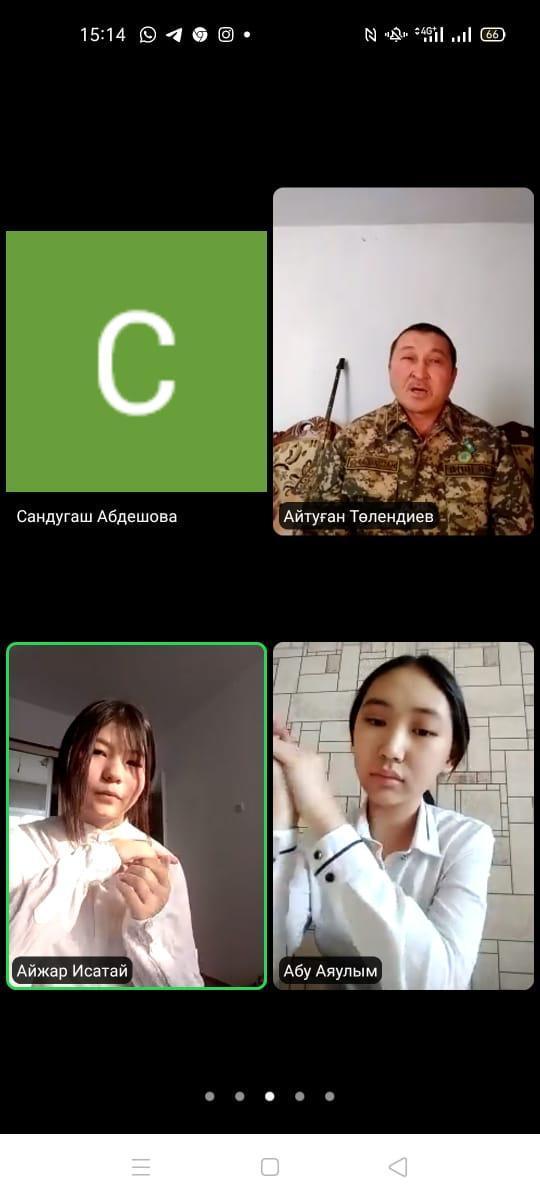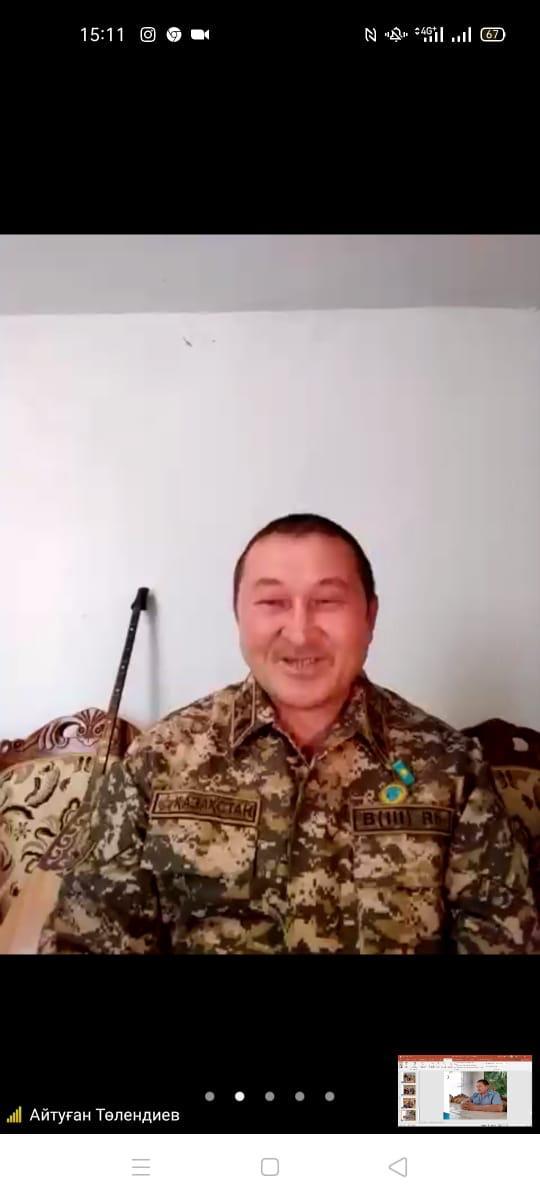 Тараз қаласындағы #46 орта мектебінде 10 "ә" сынып оқушыларымен "Жаса, жайна, Қазақстан!" тақырыбында Қазақстан Республикасының Қорғаныс Министрлігі Әуе Әскери Күштерінің отставкадағы майоры Айтуған Төлендиевпен кездесу өткізілді. Кездесу барысында сұрақтар қойылып, оқушылар әскери адам өміріне қызығушылық танытты. А. Төлендиев оқушыларға өзін Б. Момышұлының қанатты сөздерін өмірлік ұстанымы болғанын, Бауыржан ата сөздерінен өзіне күш-қуат алатындығын айтып оқушыларға патриоттық тәрбие бере білді. Б. Момышұлы толғауларының сөзіне ән жазған. "Ей, адамдар!"," Қорқамын" деген әндердің авторы.Кездесу соңында оқушылар өз ақыл-кеңесін аямай айта білген ағаларына үлкен алғысын білдірді. Кездесу өте жоғары деңгейде өтілді.