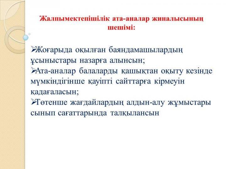 - Ата-аналар балаларды қашықтан оқыту кезінде мүмкіндігінше қауіпті сайттарға кірмеуін қадағаласын;