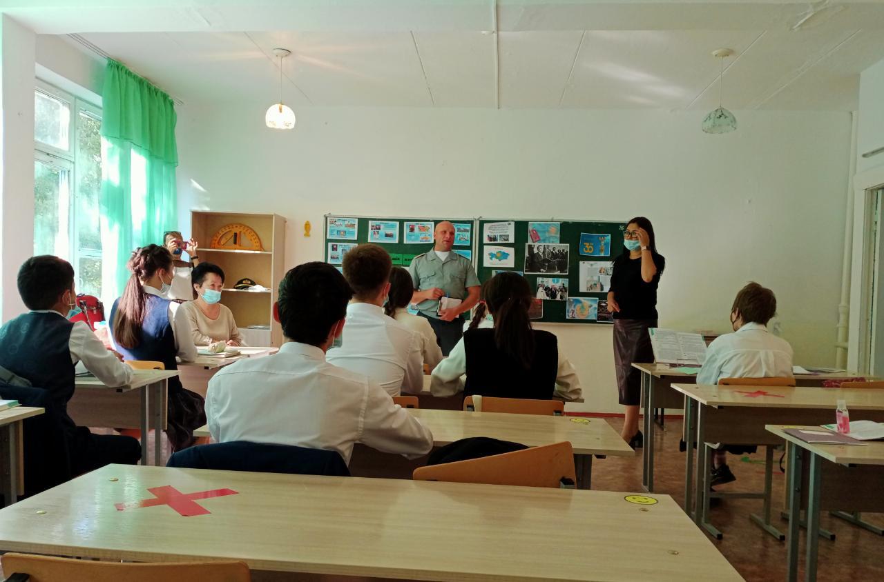 2021-2022 жаңа оқу жылының алғашқы күнінде, яғни 1-қыркүйек күні мектебіміздің 9"Е" сыныбында «Ерлік – ұрпаққа ұран» тақырыбында тәрбие сағаты өткізілді. Мақсаты: Өз Отанына шексіз берілген, патриоттық рухы жоғары, қайсар жауынгер ағалар ерлігін үлгі ету; Күні кеше ғана жарылыстан опат болған әскери боздақтар рухына тағзым етуге, есімдерін қастерлеуге тәрбиелеу. 46 орта мектебінде өткен бұл тәрбие сағатына арнайы шақырылған әскери полицейінің де айтары аз болмады. Жарылыстың себеп-салдарын қозғай отырып, келешек жастардың әскерге барып, отанын қорғауға дайын азаматтар болуын үндеді. Өзінің өмірлік тәжірибелерін мысалға ала отырып, әскери қызметтің қиын да қызық тұстарын шәкірттерімізге жеткізе білді. Түрлі сауалдар мен жауаптардың арқасында бүгін оқушыларымыз да бір рухтанып, патриоттық сезімдері арта түсті деп сенеміз! Ел аман, елдегі Ер аман болсын, ағайын!!!
