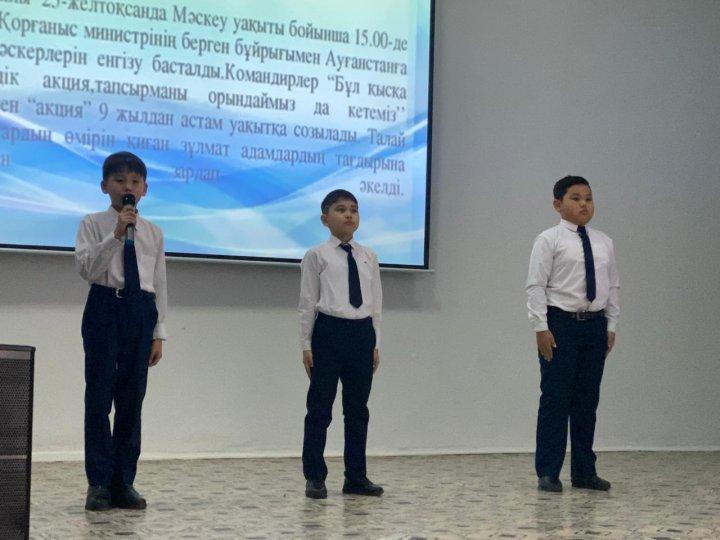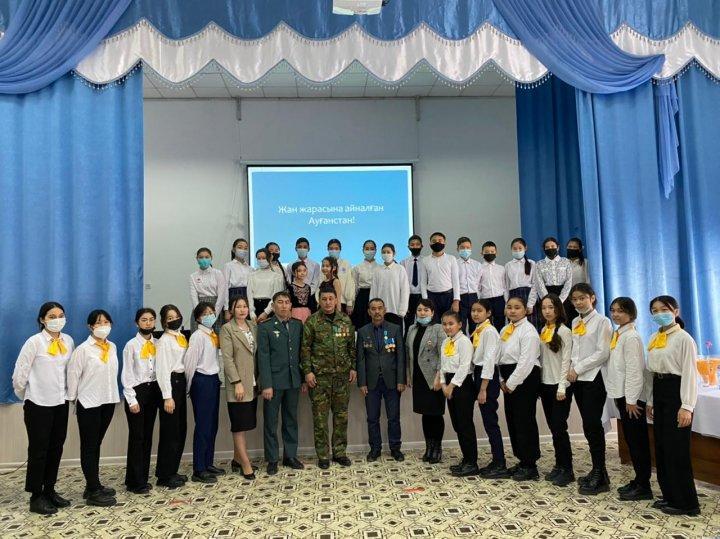 09 ақпан 2022 0 1 2 3 4 5 «Жан жарасына айналған Ауғанстан!» атты ауған соғысының ардагерлерімен кездесу Мектебімізде 9 қаңтар күні Ауған соғысы ардагерлерімен кездесу өткізілді.Кездесуді 8 «А» 8 «Ә» 8 «Г» сыныптардың ұйымдастырды. «Жан жарасына айналған - Ауғанстан!» тақырыбында ауған соғысының ардагерлерімен кездесу өте қызықты және тәрбиелік мәні бар іс-шара болып өтті. Ауған соғысы ардагерлеріне биыл – 33 жыл толп отыр. Кездесудің мақсаты Ауған соғысы ардагерлерімен кездесу және соғысқа қатысқандар ардагерлер туралы мағлұмат беру. Ауған соғысы ардагерлерімен таныстыра отырып, оқушылардың білімдері мен патриоттық сезімдерін ояту болды. Кездесу барысында, Жамбыл облысы, Тараз қаласының Ауған ардагерлері - Рахметов Баймұрат Зиябекович, Сембиев Нұрбақыт Оңланбекұлы қонақта болды. Қонақта болған ауған ардагерлері оқушыларға ауған соғысындағы қызықты оқиғаларды айтып, жақын жандарынан, достарынан айырылғандығы туралы баяндады. Кездесуде оқушыларды өз Отанын сүюге, ата-анасын құрметтеуге, үлкендерді сыйлауға шақырды.