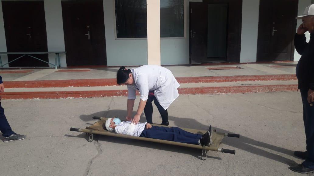 Жалпы қалалық сейсможаттығудың дабыл белгісі берілген кезден бастап мектеп оқушылары мен мұғалімдері, кіші қызметкерлер қауіпсіз орынға сапқа тұрды. Сынып жетекшілері өздерінің сыныптарымен бірге сапқа тұрғызылды. Мектептің алғашқы әскери дайындық мұғалімі С.Қ.Байқонысов азаматтық қорғаныс бастығы О.Қ.Шынбергеновке рапорт берді. Жаттығу барысында ешқандай келеңсіз жайттар орын алған жоқ. Азаматтық қорғаныс штаб бастығы Ахметова Г.М мектеп оқушылары мен мұғалімдерге сейсможаттығу нәтижесін баяндап, су тасқыны орын алған жағдайда қандай әрекет ету керектігін түсіндіріп өтті. Мектеп медбикесі Диданбекова А.А. оқушыларға адамның жарақаттанған кезінде көрсетілетін алғашқы көмек түрлерін насихаттап , көрсетіп берді.