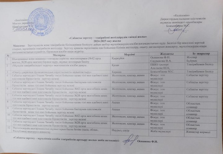 "Сабақты зеттеу- тәжірибені жетілдірудің тиімді жолы"2024-2025 оқу жылы