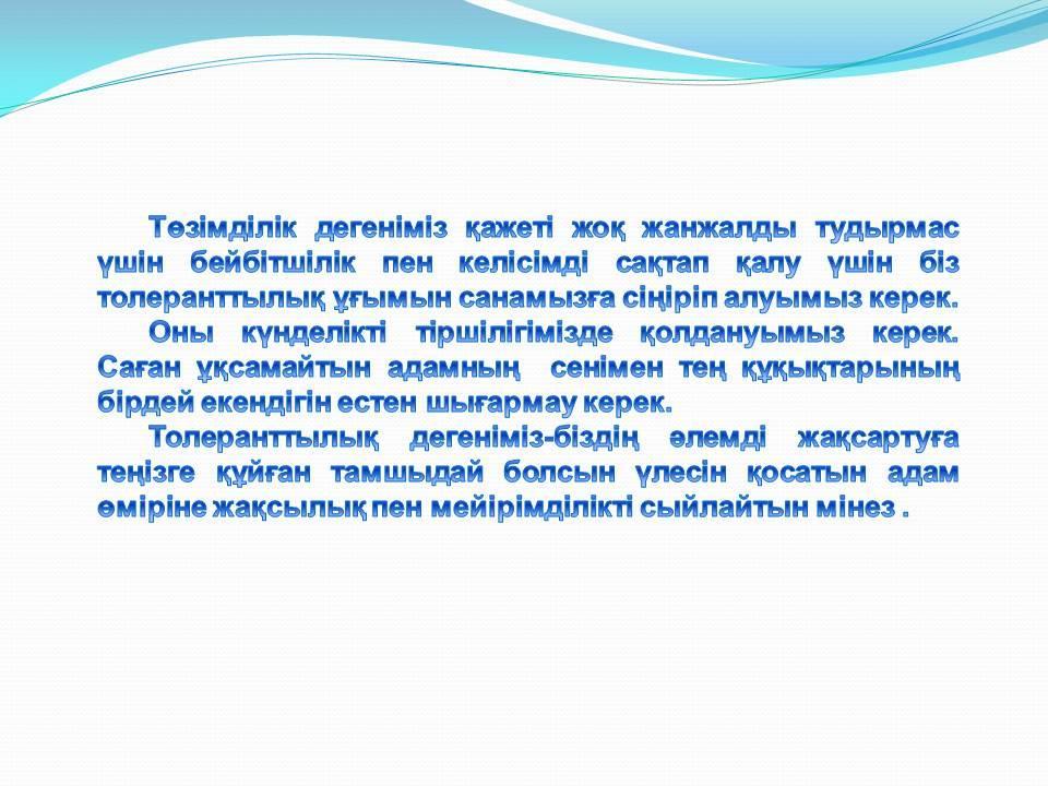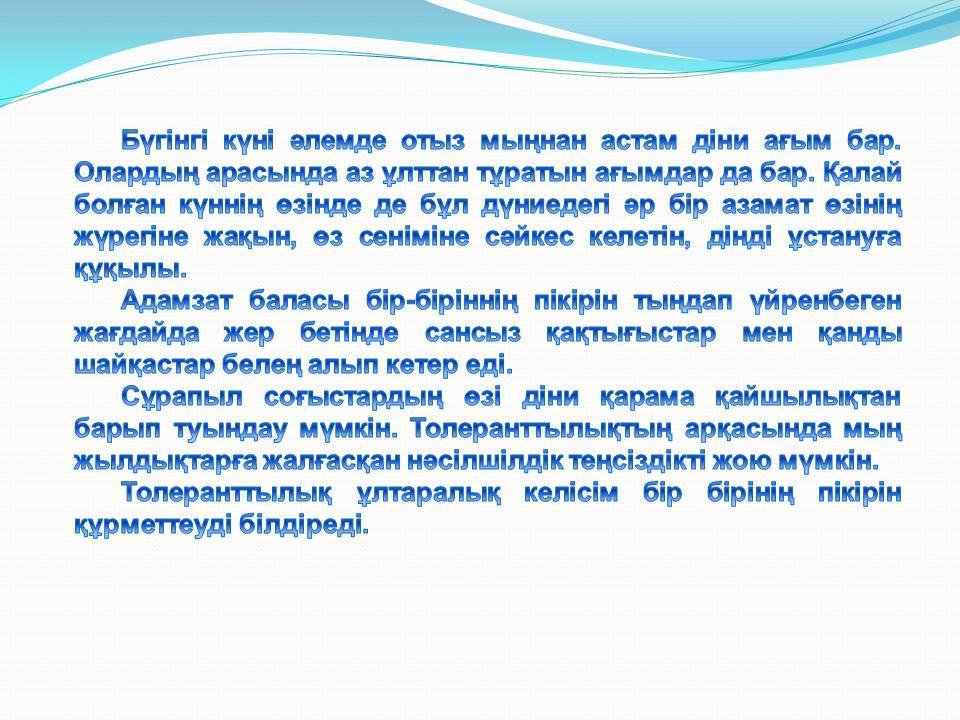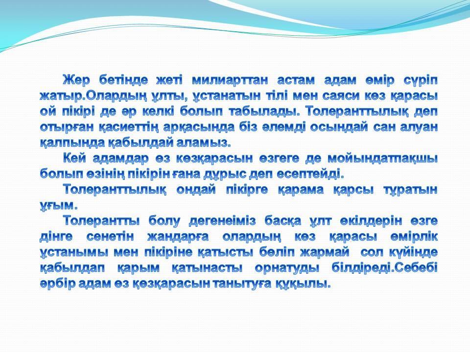 Тарих пәнінің мұғалімі М.Агатаеваның ұйымдастыруымен ағымдағы жылдың 25-ші қаңтарында 8 «А» сынып оқушылары мен «Толеранттылық-үйлесімді өзара қарым-қатынас негізі» атты дөңгелек үстел өтті.