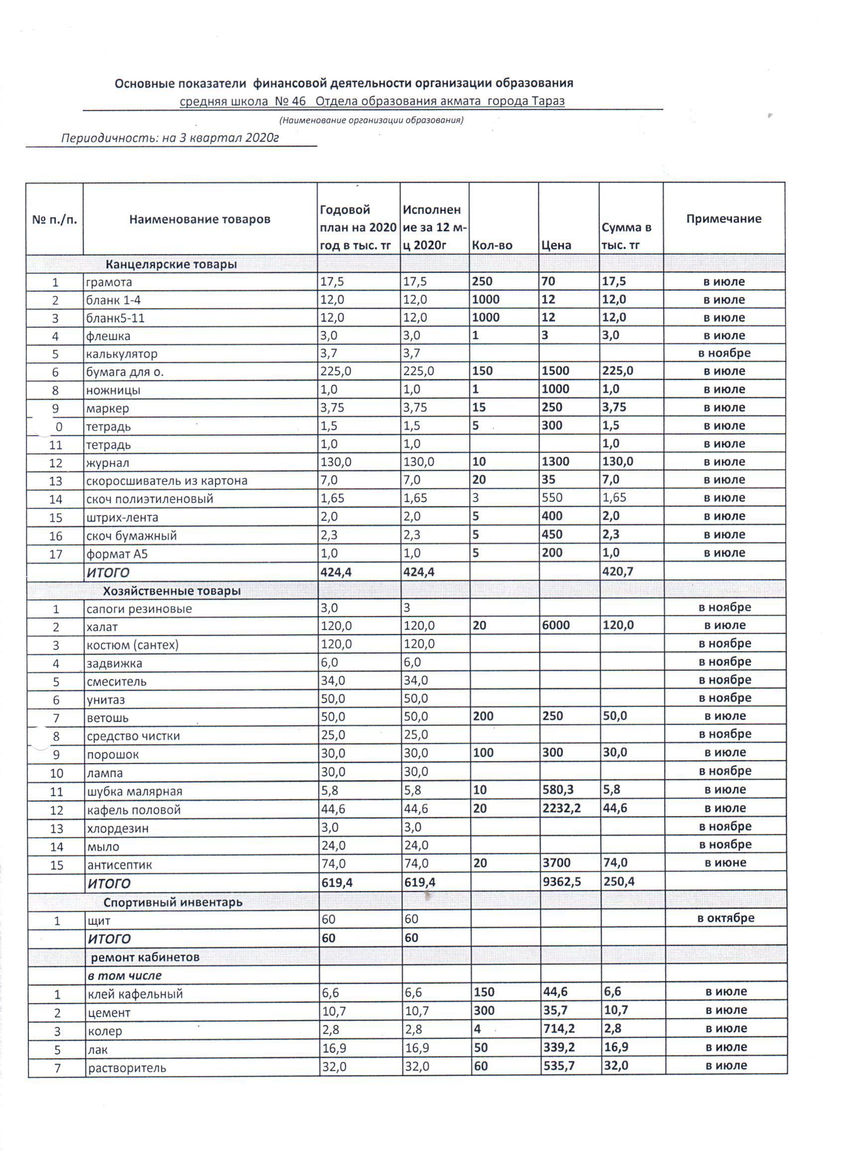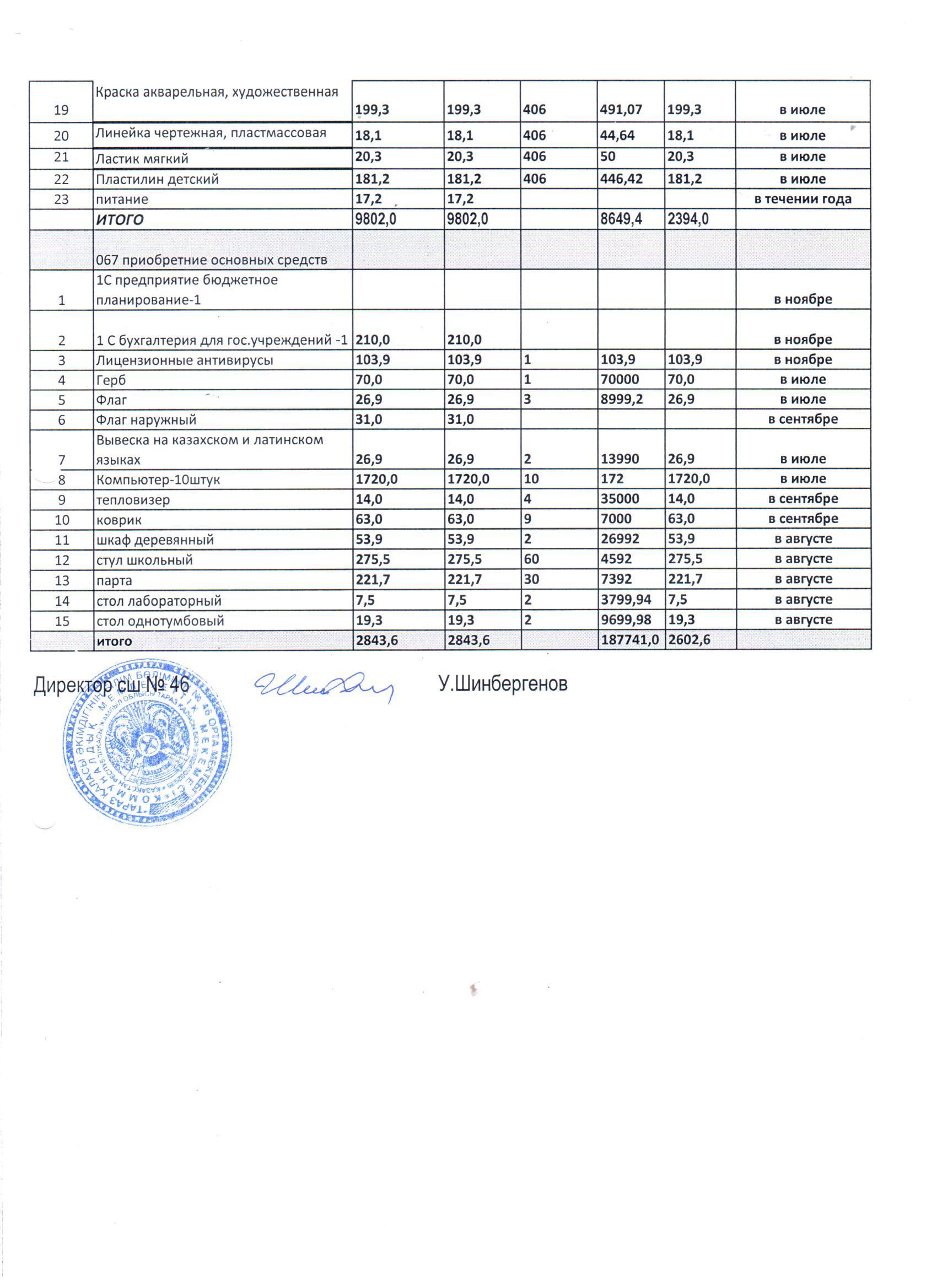 Қаржылық қызметтің көрсеткіштері » СШ №46
