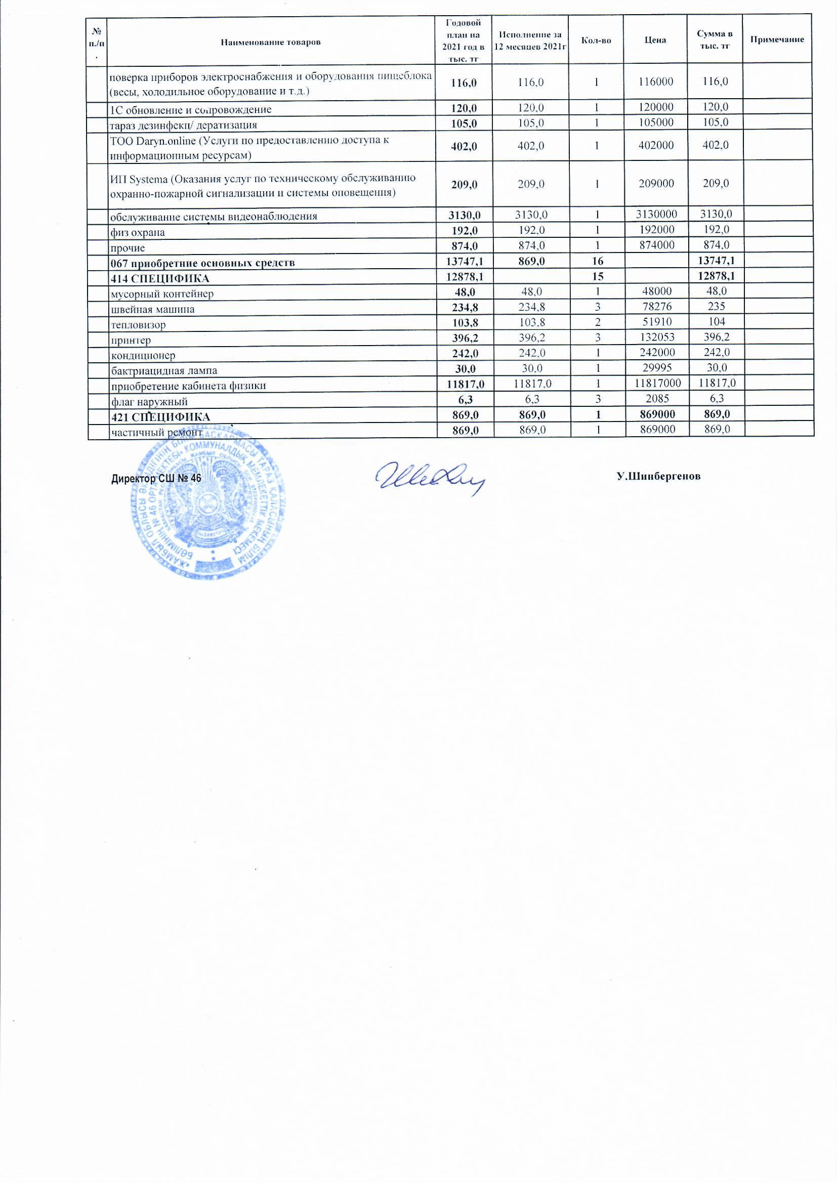 2021 жылдың қаржылай мерзімдік көрсеткіштері » СШ №46