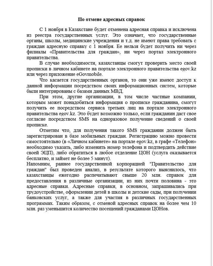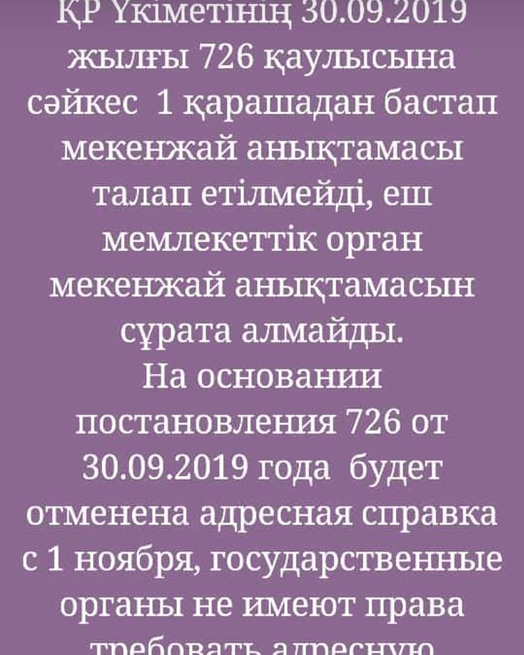 » » » 1-қарашадан бастап, мекен жайы анықтамасы талап етілмейді