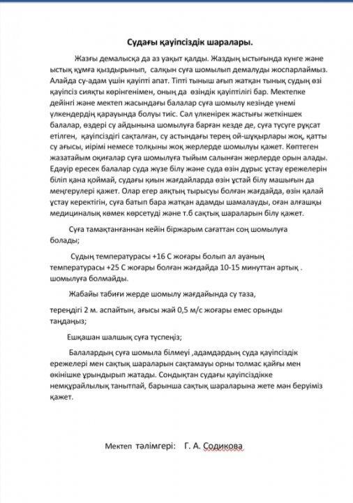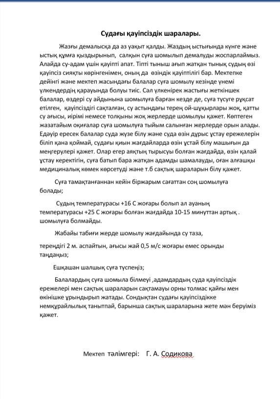 Жаз мезгіліндегі судағы қауіпсіздік шаралары » СШ №46